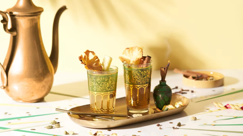 - Strain and stir through apple cider vinegar and OKUSHAL GINGER & PINEAPPLE. Serve warm on cooler days and months or chilled with lots of ice.